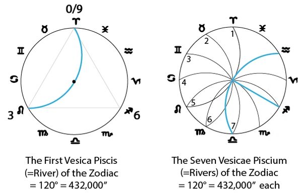 As told in Part Two of Geometric Keys of Vedic Wisdom (book), the vesica piscis revealed itself to me in February-September of 2016 as a key of Vishnu's avatars and of the Sanatana Dharma (Eternal Law) they preserve and restore in the world in their respective Ages. Then on 2 October 2016, seven days before the passing of Patrizia Norelli-Bachelet (Thea), while mountain biking along a dry creek bed, I came to see and understand the Vedic River as a symbol of the vesica piscis arcing and flowing through the Zodiac (=Vedic Year/Sacrifice).