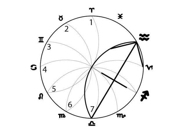 It is necessary to mention that once I saw that the first seven vesicae piscium of the Zodiac measure out 0° Aquarius, I realized that Thea's seeing of the zodiacal location of the release of the Seven Rivers at 10° Capricorn—the 7 Point of the Year—was off by 20°. She correctly saw and understood the release of the seven rivers as a victory occurring in the heavenly Swar quadrant—the final quadrant of the Zodiac, but she was simply unaware that these sacred and eternal rivers represent the Sanatana Dharma (Eternal Law) and Divine Maya (Divine Measure) of the vesica piscis and its indwelling radius (=son) that together measure out the circle of the Zodiac. As a result, she did not see the geometric sense and measure of Agni's seven-river journey and birth which brings him to his Jar or Kumbha. Like his seven rivers or mothers, the location of Agni's victorious seven-fold birth was also given hundreds of names by the Vedic Poets. Thea’s view of the 10° Capricorn location of the seven Vedic rivers, as presented in The New Way, Vols. 1 & 2 , is shown to the right and then again below, far-left. Below, far-right, I have added the circle (the SOLAR HALO) and arc of the seventh mother (aka Saraswati), formed by the indwelling radius of the Sagittarian Son-Sage-Horse who flows to the Jar or Kumbha of Aquarius – the meeting or gathering place of the rivers and of the Vedic gods and goddesses.